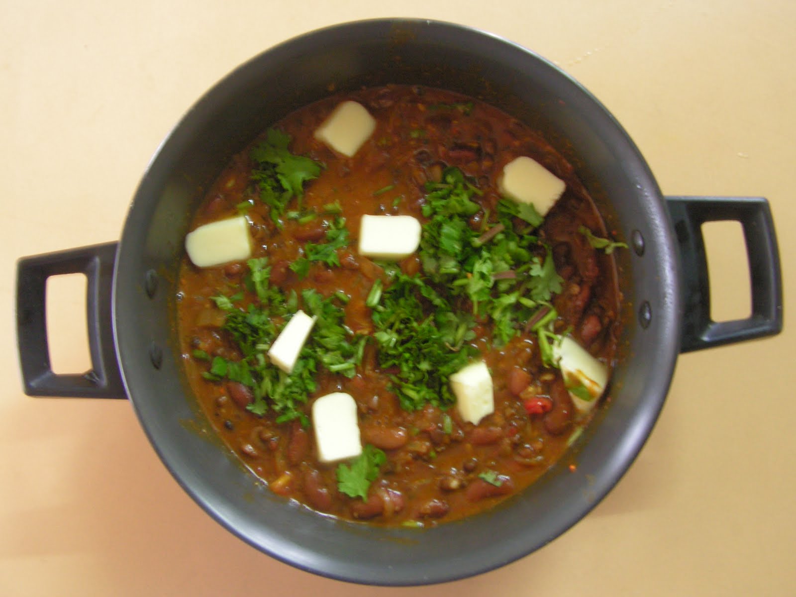 powder and half the chopped ginger till dal and rajma are cooked and soft.